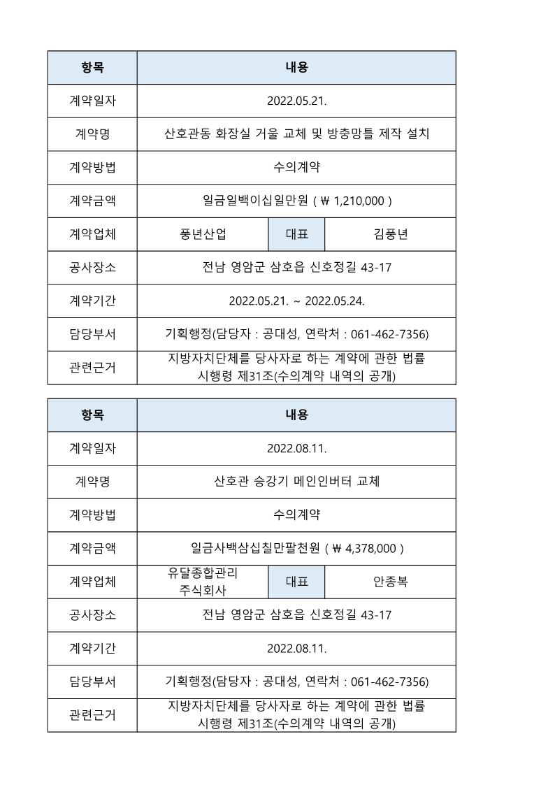 2022년 목포광명원 수의계약 내역 공개 페이지 정보 작성자 관리자 조회 20회 작성일 25-12-26 11:20 목록 본문 * 홈페이지 개편으로 인하여 재공개 이전2023년 목포광명원 수의계약 내역 공개 25.12.26 다음목포광명원 직원(생활재활교사) 채용 공고 25.12.22